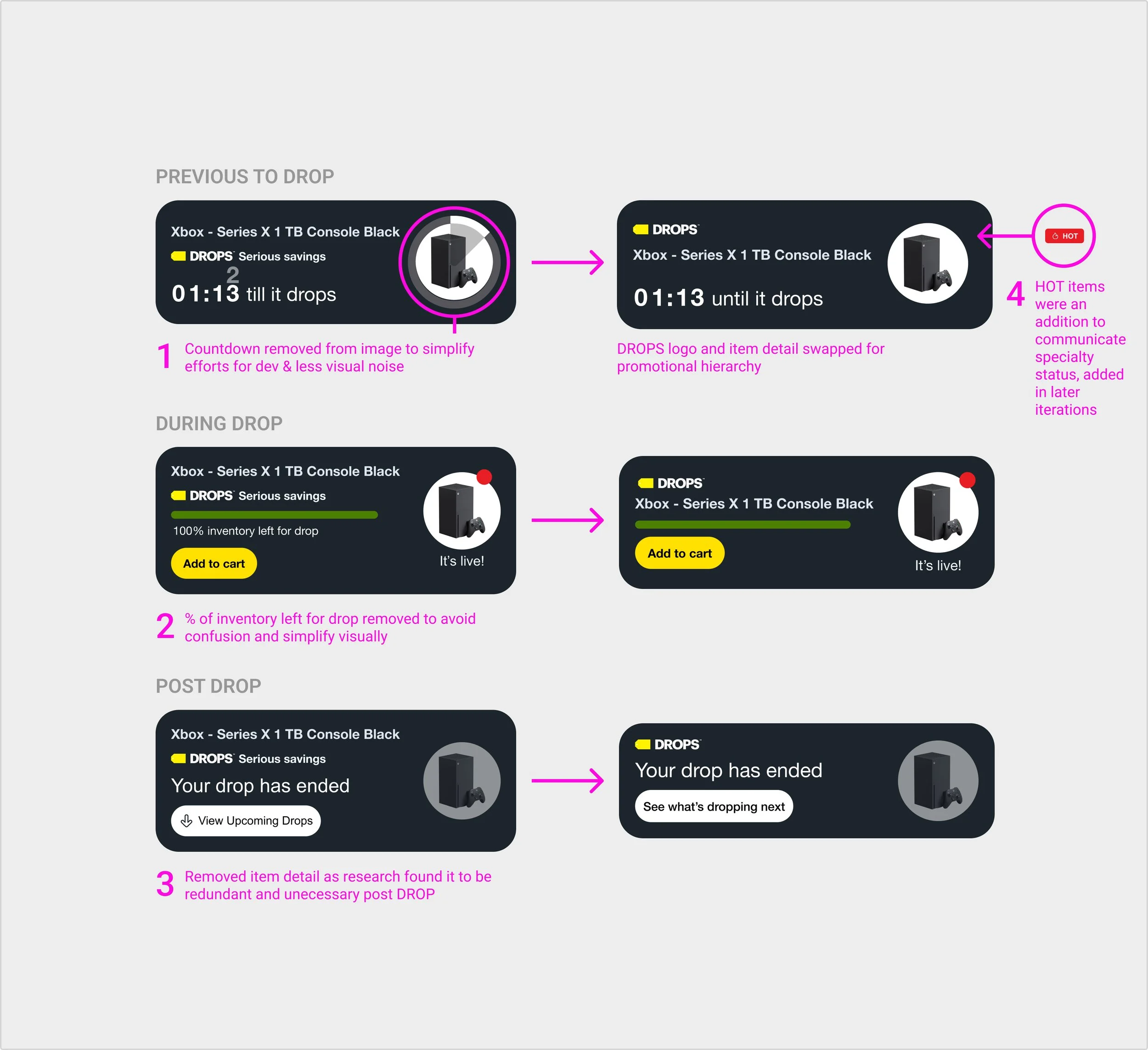 Valuable improvements were made in discovery as iterations continued. Simple gestures increase details for users, focusing their experience by eliminating guesswork. Gestalt design theory flex.